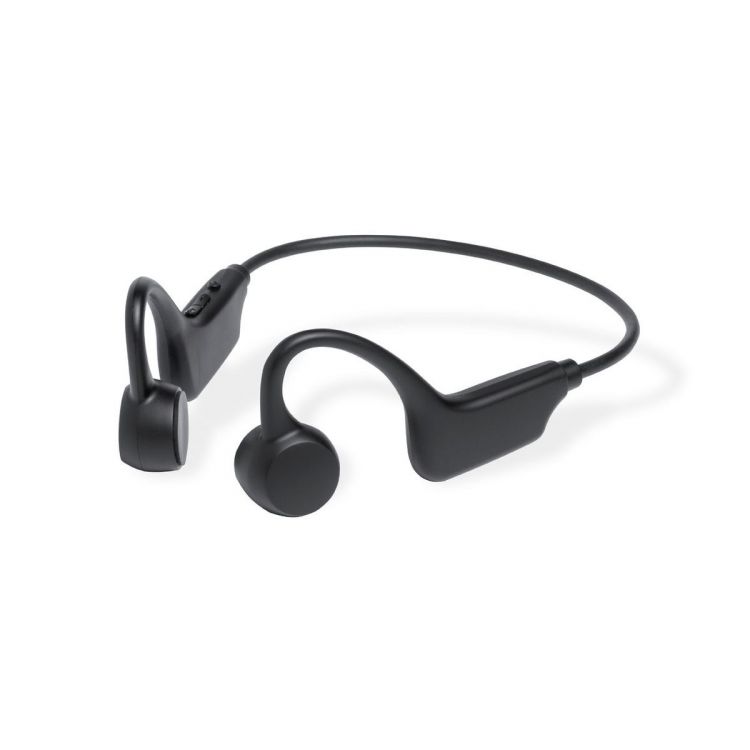 Casque supra-aural Bluetooth®. Avec la technologie de conduction osseuse (Bone Conduction Technology), qui génère une vibration captée par les os de l'oreille interne. Grâce à cette technologie, l'oreille et les tympans de l'utilisateur restent libres et perçoivent à la fois le contenu diffusé par le casque et le reste des sons ambiants.Connexion Bluetooth® 5.3, avec fonction mains libres, emplacement pour carte micro SD et batterie intégrée de 250 mAh. Conception ergonomique avec boutons de commande intégrés, voyant d'état de charge LED et câble de charge Type-C. Présenté dans une boîte individuelle kraft design, avec un manuel d'instructions en espagnol et en anglais. (couleur noir)