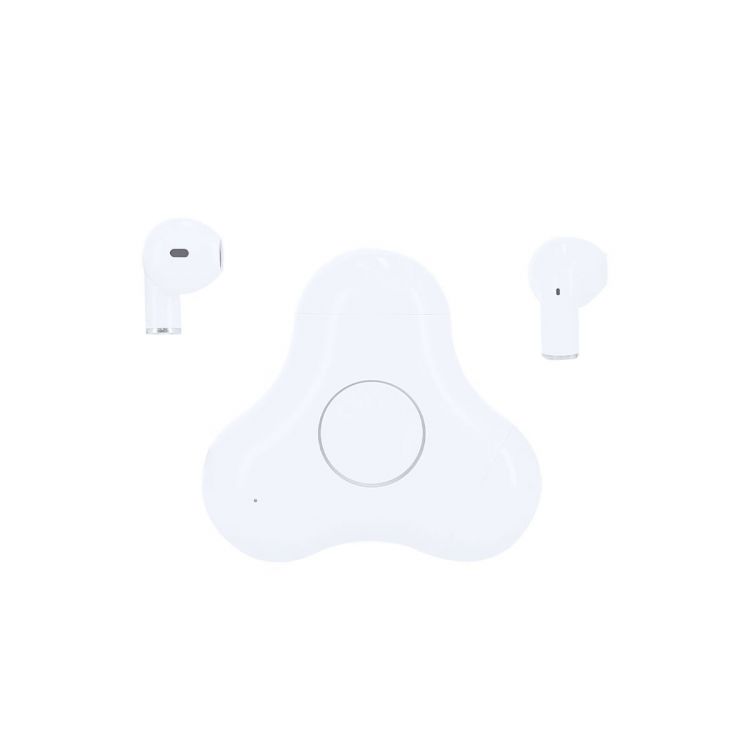Écouteurs intra-auriculaires au design élégant blanc et connexion Bluetooth® 5.3. Étui au design original en forme de spinner, avec batterie de 200 mAh. Écouteurs à bouton de contrôle tactile intégré et fonction mains libres. Rechargeables, avec câble Type C -inclus-. Manuel d'instructions disponible en espagnol et en anglais. (couleur blanche)