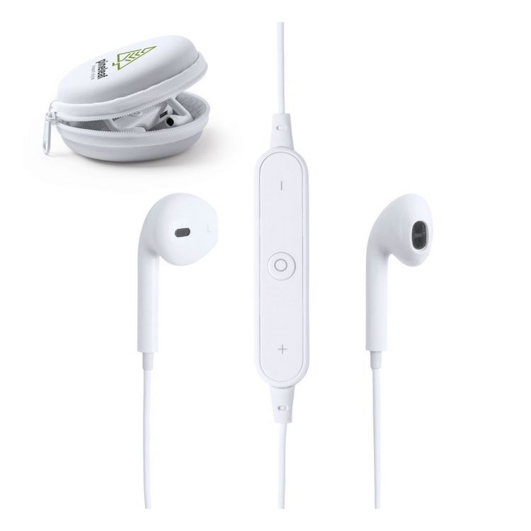 Écouteurs intra-auriculaires avec connexion Bluetooth et design minimaliste dans une élégante couleur blanche. De conception ergonomique, ils comprennent un panneau de commande intégré au câble et offrent une fonction mains libres. Rechargeable via un mini câble USB - inclus -. Présenté dans un étui individuel résistant en similicuir assorti avec fermeture à glissière. (couleur blanche)
