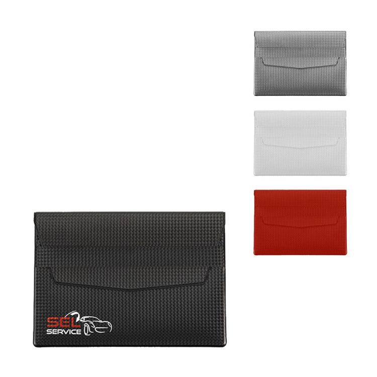 Porte-documents en matériau à effet carbone avec rabat et fermeture.