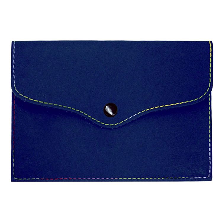Porte-documents en PVC caoutchouté, avec rabat profilé et bouton, avec surpiqûres toutes colorées sur le pourtour