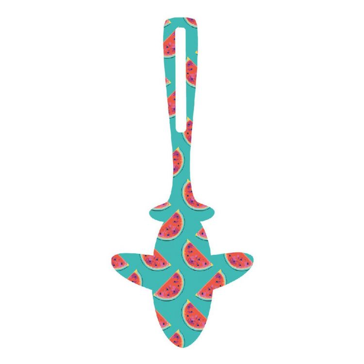 Etiquette à bagages imperméable en forme d'avion. Le prix unitaire inclut l'impression sublimation sur une face. Quantité minimale : 250 pcs