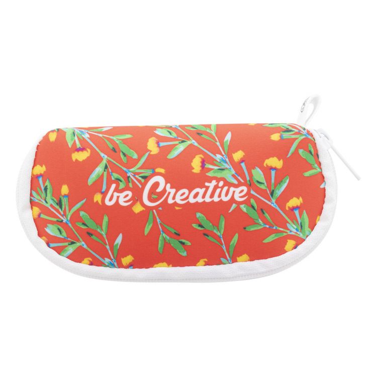 Étui à lunettes de soleil en néoprène RPET avec compartiment zippé. Impression en sublimation sur toute la surface et labélisé RPET. Le prix comprend l'impression en sublimation. Quantité minimale : 50 pièces.