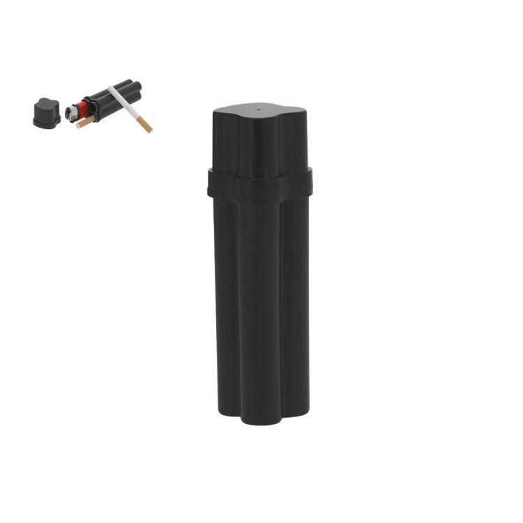 Pratique étui pour tabac au design compact et longueur spéciale, idéal pour le transport. Capacité pour deux cigares et un briquet. Avec couvercle à charnière.