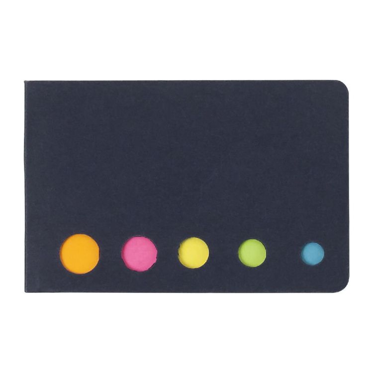 Etui cartonné de 300g/m² contenant 100 marque-pages repositionnables de 75g/m² dans 5 coloris différents.
