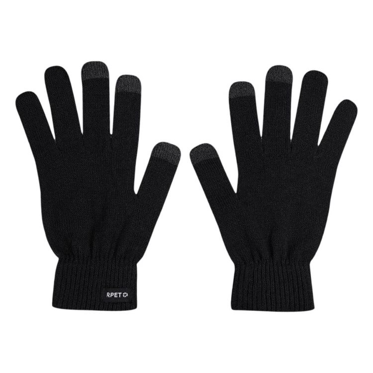 Gants tactiles en polyester RPET avec revêtement spécial sur 3 doigts. En taille unique pour adultes.