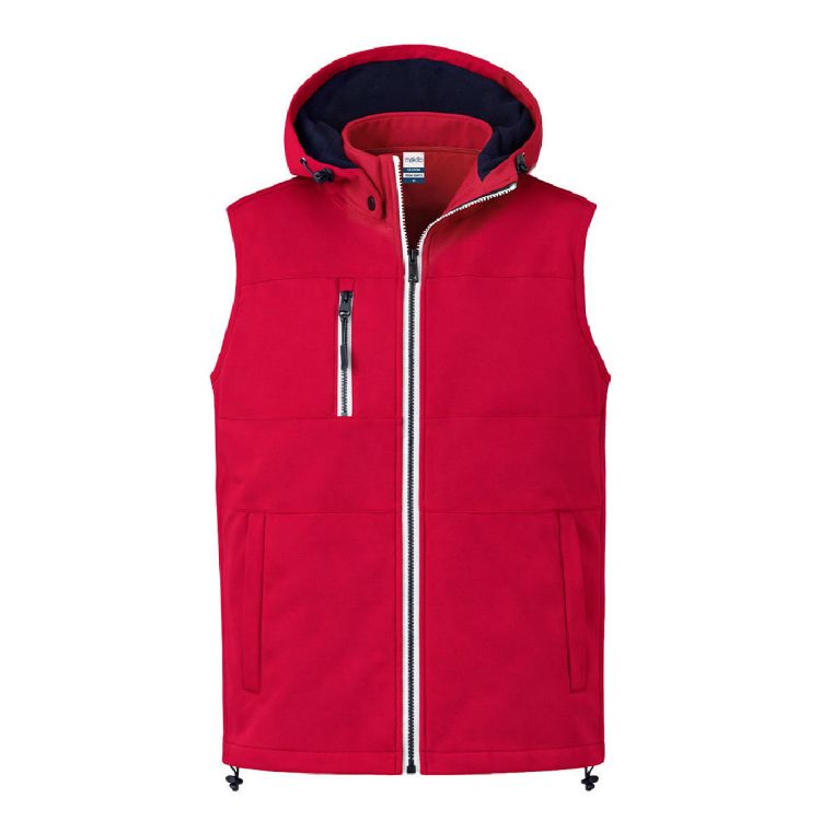 Gilet en matière softshell 300g/m2 résistante et respirante. Coupe moderne, avec un zip central, des poches latérales et une pratique poche poitrine avec fermetures zip et anses contrastées. Col montant avec capuche ajustable et amovible. Ourlet inférieur avec cordon de serrage réglable. Extérieur softshell résistant au vent et à l'eau et intérieur chaud en micropolaire de couleur contrastante. Disponible en tailles XS, S, M, L, XL, XXL.