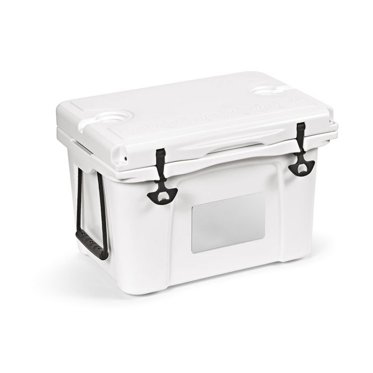 Glacière San Francisco 35L fabriquée en plastique recyclé à double paroi, conçue pour allier praticité et durabilité. Elle est équipée de poignées doubles en corde de chaque côté, ainsi que de poignées moulées intégrant des décapsuleurs pour un transport aisé et une fonctionnalité accrue. Une bonde de vidange avec bouchon noir à la base permet un écoulement rapide et sans effort. Une plaque métallique de 20 x 10 cm sur le panneau avant apporte une touche élégante. Le couvercle intègre deux porte-gobelets ainsi qu’une règle gravée — idéale pour les aventures en plein air. L’isolation permet de garder les boissons fraîches jusqu’à 4 jours. Capacité : 48 canettes., de couleur blanche