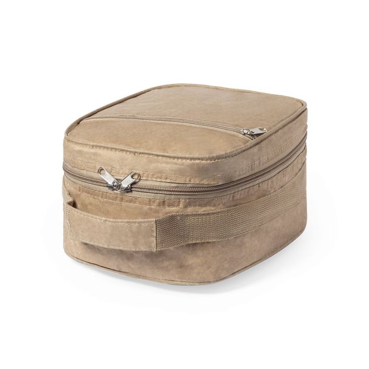 Réfrigérateur de la ligne Nature, en papier recyclé. Avec deux compartiments de fermeture à glissière indépendants avec poignées en métal. Poignée de transport renforcée et intérieur isotherme en aluminium. (couleur naturel)