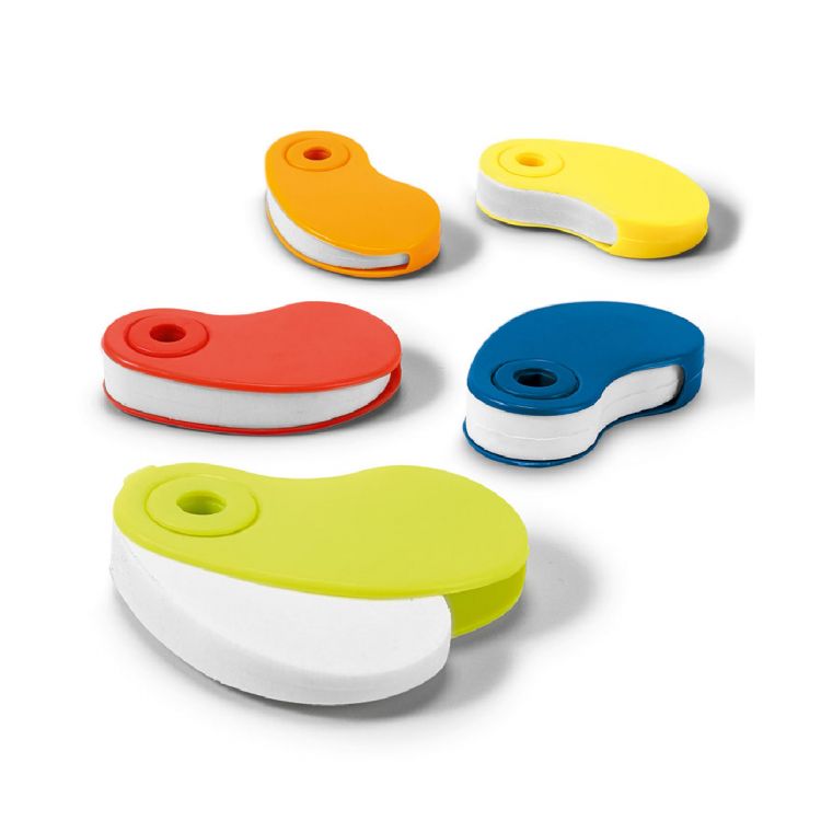 Gomme blanche en TPR avec protecteur en PP, permet d'effacer les marques de crayon sans endommager le papier. Gomme circulaire. Idéal à emporter à l'école