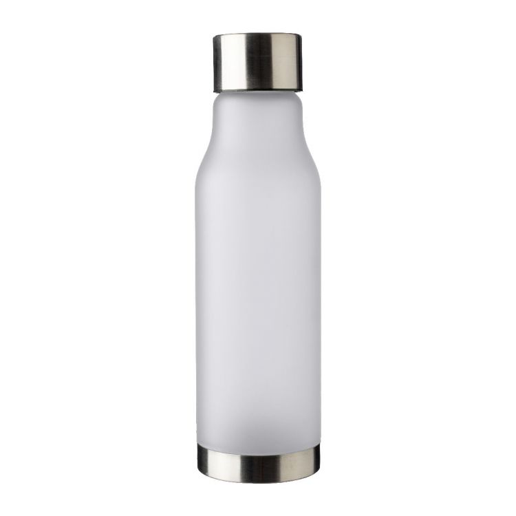 Gourde en rPET toucher gomme d’une contenance de 600 ml avec bouchon en acier inoxydable 201, livré en vrac.