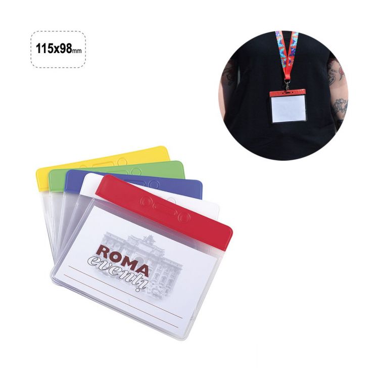 Grande enveloppe porte-badges horizontale, avec bande supérieure de couleur assortie aux trous.