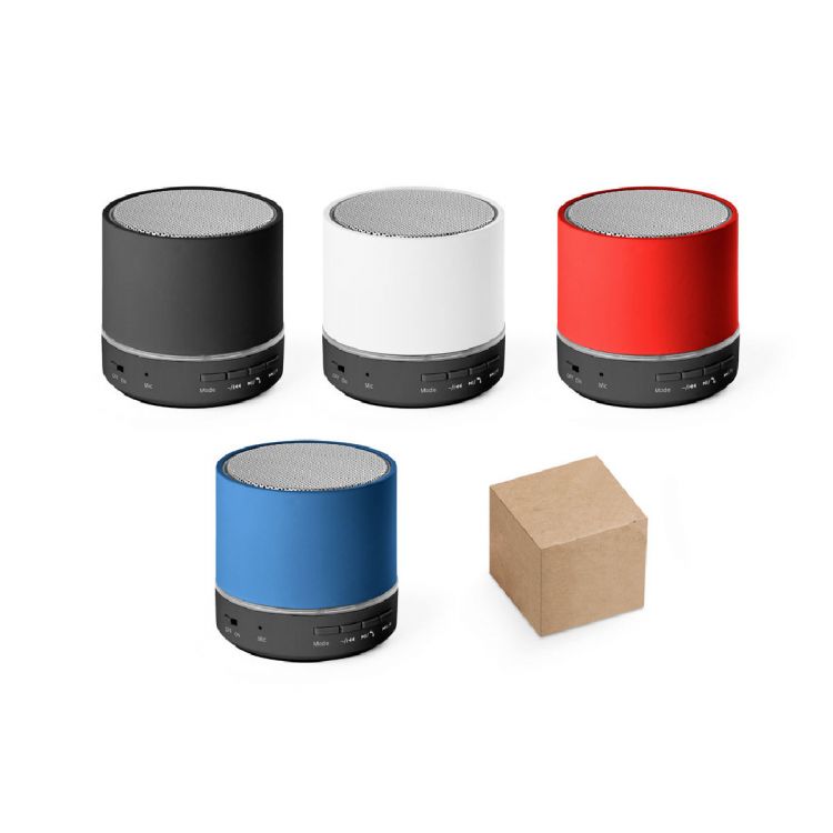 Enceinte portable de forme ronde, idéale pour vous accompagner tout au long de la journée. Avec une autonomie d'environ 4,5 heures et un microphone intégré. Si aucune personnalisation n'est choisie, la grille est fournie séparément dans le coffret cadeau. Une fois fixée à l'enceinte, la grille ne peut plus être retirée.
