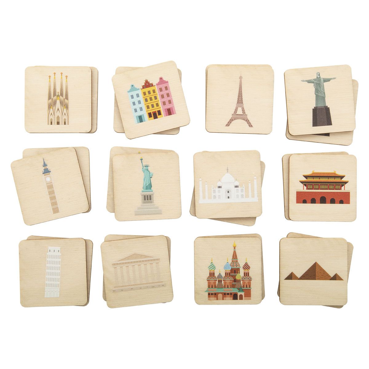 Jeu de memory en bois de bouleau laminé avec des motifs thématiques. Comprend 24 tuiles (40x40 mm). Le prix comprend 1 logo couleur imprimé au dos de toutes les tuiles. Quantité minimale : 50 pièces