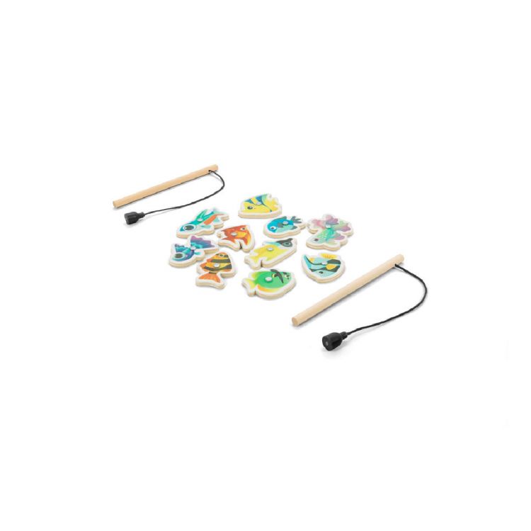 Jeu de pêche composé de 10 poissons en bois, avec un aimant au centre et un motif sur un seul côté. Comprend 2 cannes à pêche en bois, avec un ruban en tissu noir et un embout en plastique avec un aimant pour attraper les poissons. Un jeu amusant pour toute la famille. Livré dans une boîte cadeau en papier kraft. Le produit étant fabriqué à partir de matériaux naturels, la couleur du produit ainsi que le résultat de l'impression peuvent varier d'un produit à l'autre. Produit en naturel