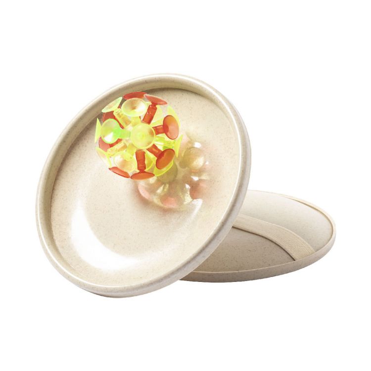 Jeu de plage, comprenant des balles avec ventouses et des pagaies à disque plat en plastique paille de blé avec sangle élastique, de couleur naturel