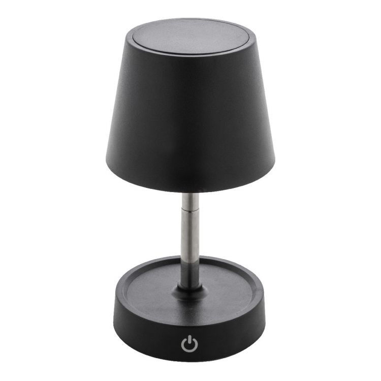 Lampe de table télescopique en ABS recyclé avec 12 LED, luminosité réglable et batterie USB rechargeable de 1200 mAh. Câble de recharge USB inclus.