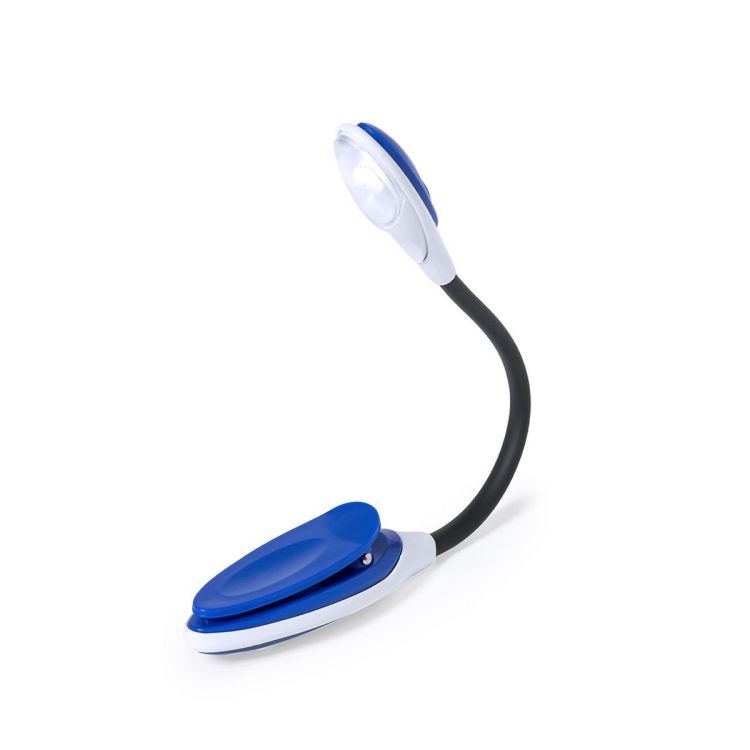 Lampe LED de lecture au design bicolore. Avec corps flexible et pince de fixation pratique. Présentée sous boite individuelle.