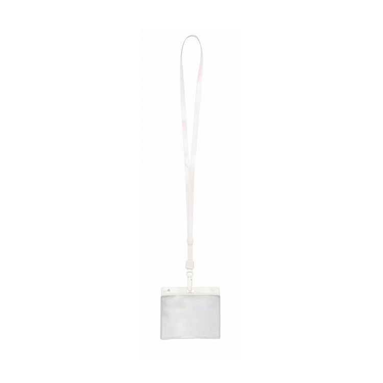 Badge en PVC avec lanyard assorti dans des couleurs vives avec fermeture par mousqueton. Pastille ronde pour marquage