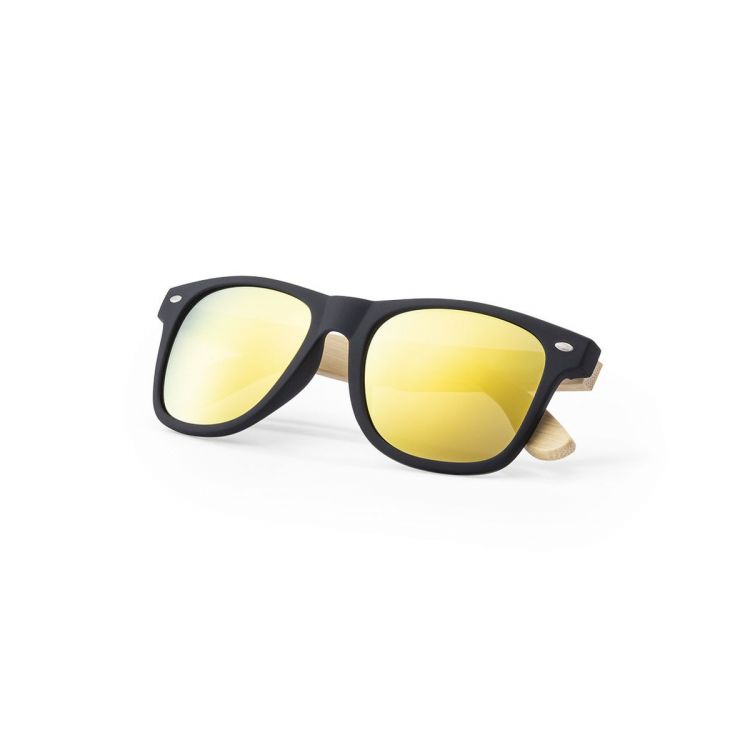 Lunettes de soleil nature avec protection UV400. Cadre noir dans le matériel robuste de PC et les pattes en bambou. Verres AC (ac(acétate de cellulose) finis miroir, disponibles dans un large éventail de couleurs. Présenté dans une jolie boîte de design écologique.