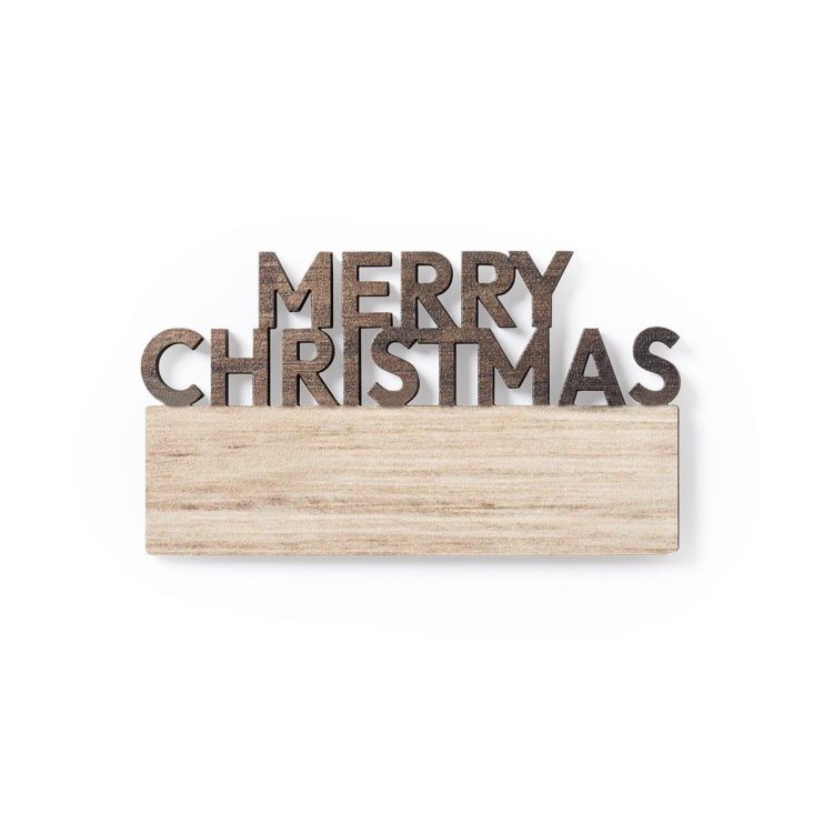 Aimant original Merry Christmas en bois naturel, avec texte découpé et une finition bicolore originale. Grande surface de marquage et caractéristique Made In Europe. (couleur naturel)