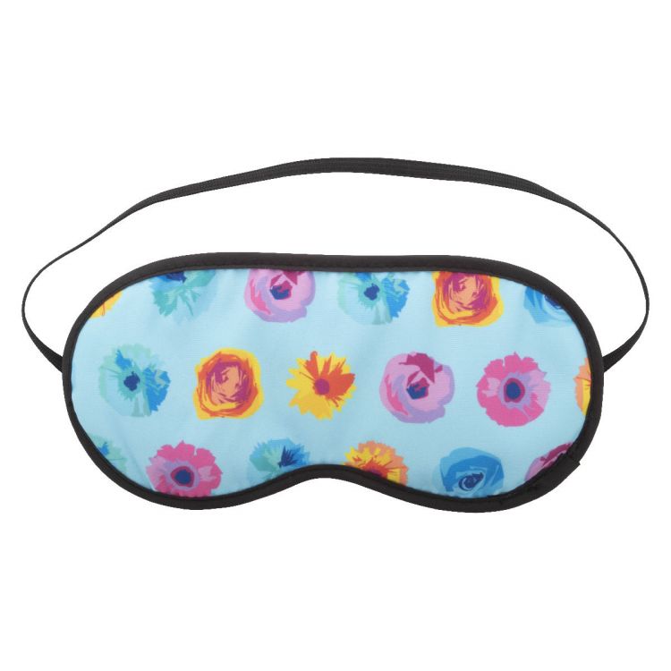 Masque de voyage pour les yeux en polyester (140 g/m²), avec rembourrage en mousse, liseré et sangle noir. Impression en sublimation. Quantité minimum : 100 pièces, de couleur noir