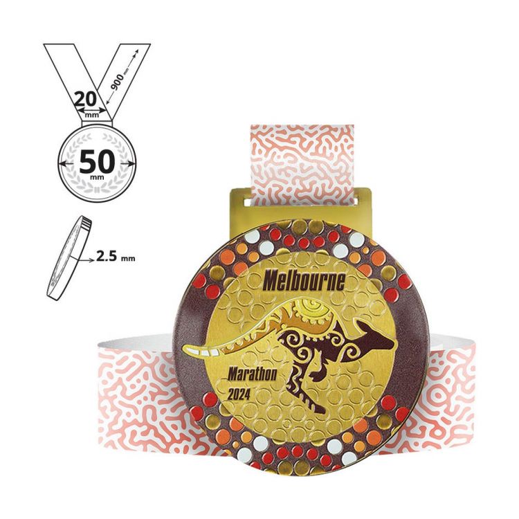 Médaille ronde imprimée en quadrichromie sur la face avant et comprenant un tour de cou de 20x900 mm entièrement personnalisable. Grâce au traitement spécial - découpe au laser et impression UV en quadrichromie sur toute la surface - nous pouvons réaliser toutes les personnalisations demandées par le client. Le revers de la médaille est teinté en noir.