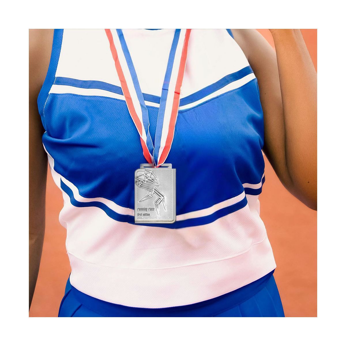 Médaille rectangulaire avec tour de cou de 15x900 mm entièrement personnalisable. La médaille est fabriquée à l'aide d'un moule à effet 3D spécialement créé selon le design du client. Ce processus permet d'obtenir un produit unique en trois dimensions, coulé à l'intérieur du moule. Les médailles sont disponibles en trois finitions de base (or, argent et bronze) au même prix.