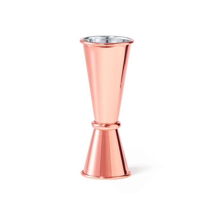 Compteur de boissons en acier inoxydable avec un revêtement extérieur en cuivre galvanisé. 2 distributeurs : simple 25 ml et double 50 ml. Présenté dans une jolie boîte au design individuel. (couleur naturel)