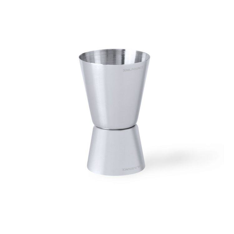 Mesure à boissons en acier inoxydable finition mate. Spécialement conçue pour le marquage laser et présenté dans une boîte en PVC. (couleur naturel)