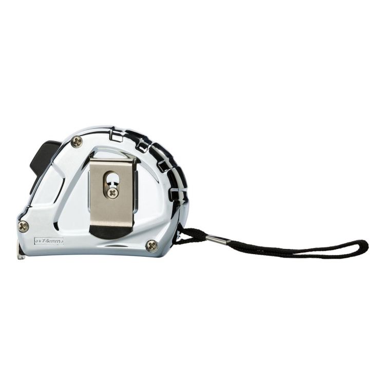 Mètre-ruban en plastique de 3 m avec clip ceinture et dragonne.