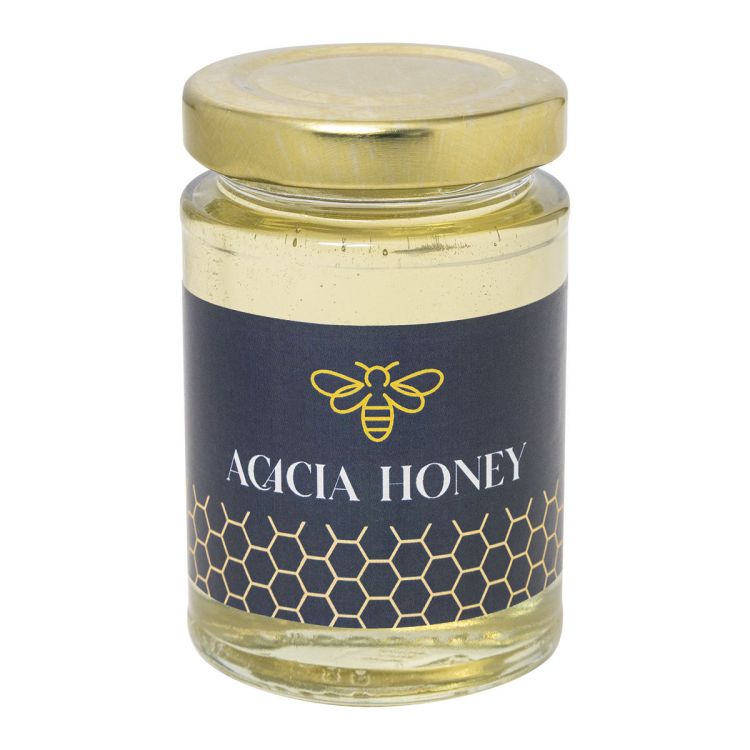 Miel d'acacia dans un pot en verre et un couvercle en métal, 135 grammes