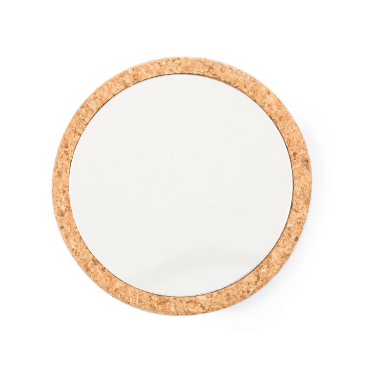 Miroir 1X fabriqué en liège. Pratique miroir portable recouvert d'un liège souple et présenté dans une boîte individuelle design kraft. (couleur naturel)
