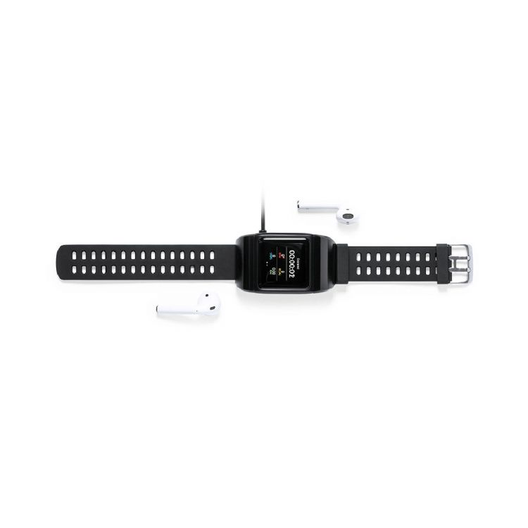 Montre connectée multigadget avec écouteurs intra-auriculaires intégrés au boîtier. Avec une connexion Bluetooth® et un design décontracté, un bracelet en matériau TPU et un écran tactile TFT de 1,30 pouce, ce qui en fait le gadget parfait pour toutes sortes de sports, de loisirs et d'activités quotidiennes.Résistant aux éclaboussures d'eau, avec APP disponible pour iOS et Android. Rechargeable par USB (câble inclus) et présenté dans un joli coffret design. Manuel d'instruction disponible en espagnol et en anglais. (couleur noir)