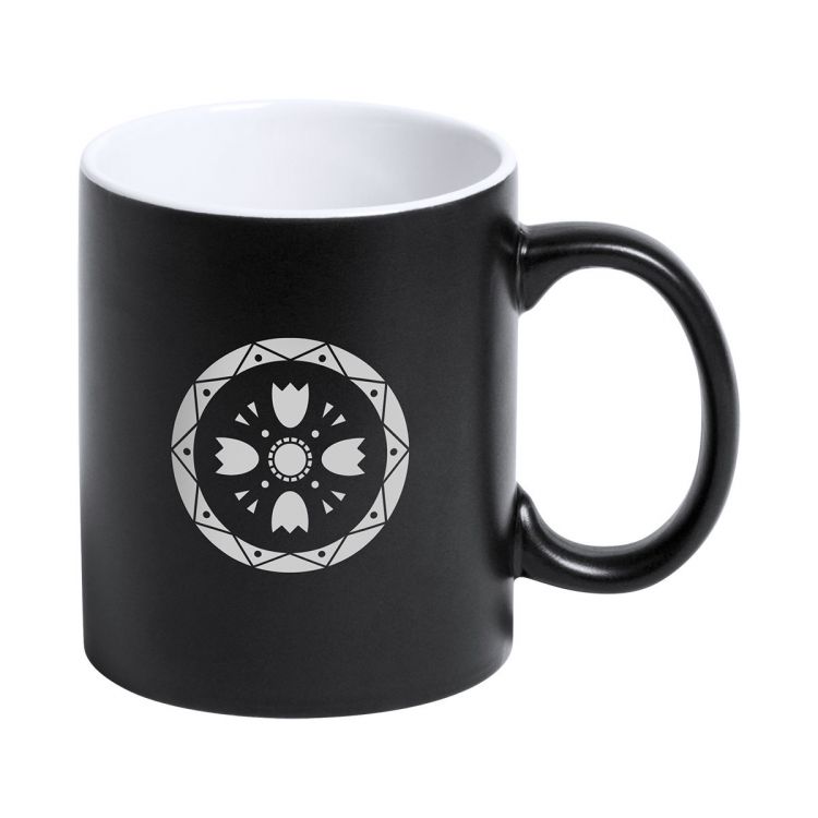 Mug coloré en céramique avec intérieur blanc. 350 ml. Revêtement spécial permettant de graver le logo de la couleur de l'intérieur du mug. Livré dans une boîte cadeau.