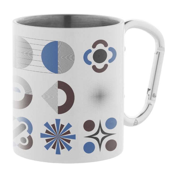 Mug pour sublimation double paroi en acier inoxydable recyclé avec poignée mousqueton en aluminium recyclé. 300 ml. Livré dans une boîte en papier kraft, de couleur blanche