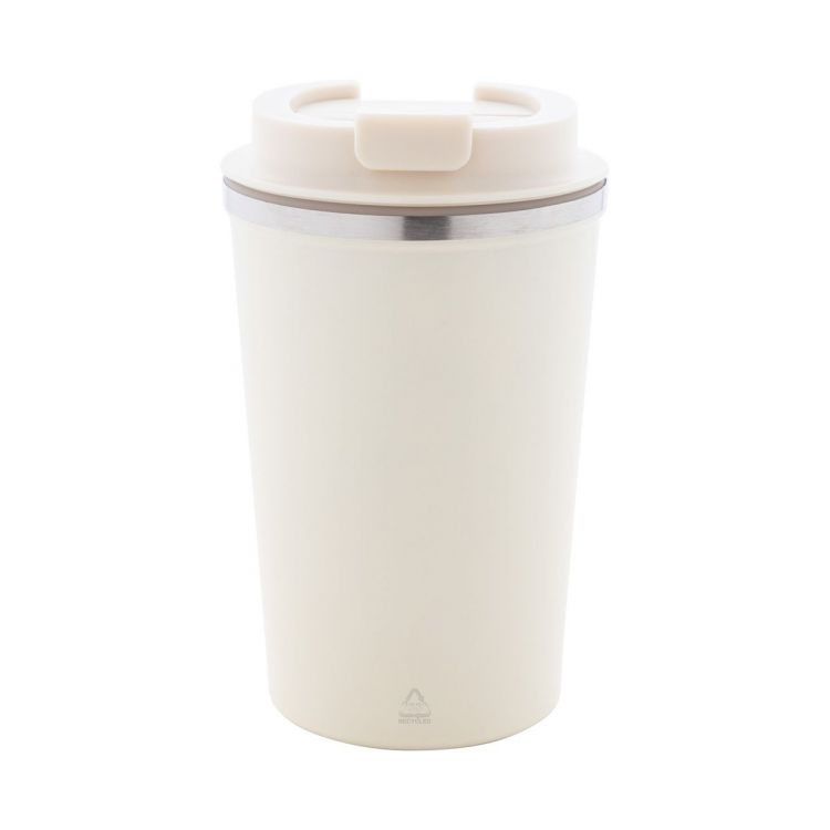 Mug thermos isotherme en acier inoxydable recyclé à double paroi avec bec verseur en PP. 350 ml.