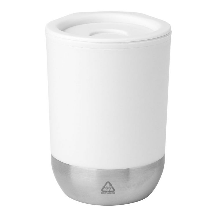 Mug thermos isotherme double paroi en plastique PP avec base en acier inoxydable recyclé et bec verseur. 300 ml.