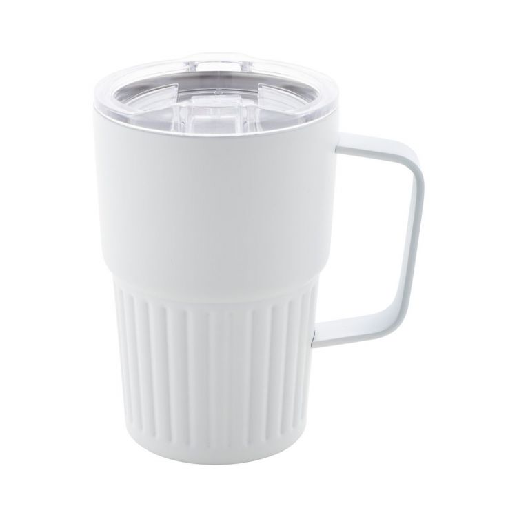 Mug thermos isotherme à double paroi en acier inoxydable recyclé avec couvercle en plastique ABS. 470 ml.
