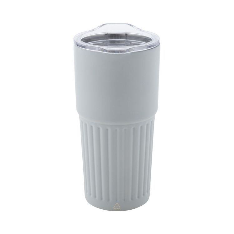 Mug thermos isotherme à double paroi en acier inoxydable recyclé avec couvercle en plastique ABS. 600 ml.