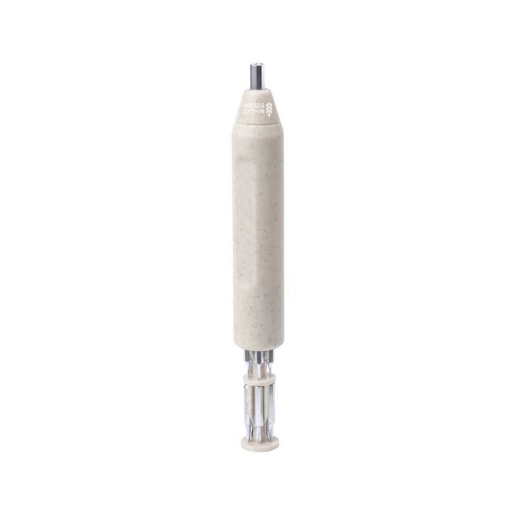 Pratique multi-outils en canne à blé en forme de tournevis. Comprend un compartiment dans la poignée pour stocker les multiples pointes magenétiques (plates et cruciformes). Avec Logo canne à blé inclus. Présenté dans une boîte de conception kraft. La canne à blé encourage l’utilisation de matières premières naturelles, réduisant ainsi les émissions polluantes. (couleur naturel)
