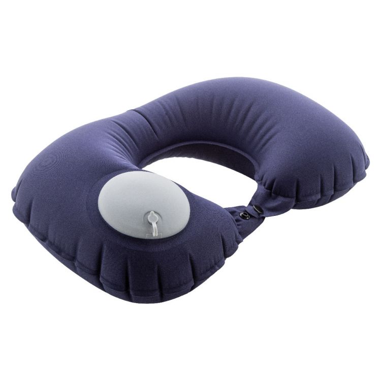 Oreiller de voyage gonflable en polyester RPET avec pompe intégrée pour faciliter le gonflage et le dégonflage. Dans une pochette avec cordelettes en tissu assorti. Avec étiquette RPET distinctive.