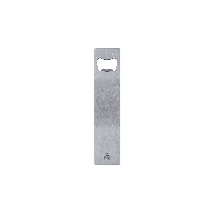 Ouvre-bouteille en acier inoxydable recyclé. Inclut un label en acier inoxydable recyclé.L'acier est l'un des matériaux les plus demandés et que l'on peut trouver presque partout, des produits d'usage quotidien aux grandes constructions. Avec d'innombrables propriétés, parmi lesquelles la durabilité et son haut degré de réutilisation, en faisant une alternative très appréciée dans les solutions de durabilité. Traitée correctement, elle permet d'obtenir de nouvelles ressources d'utilisation infinie. (couleur argent)