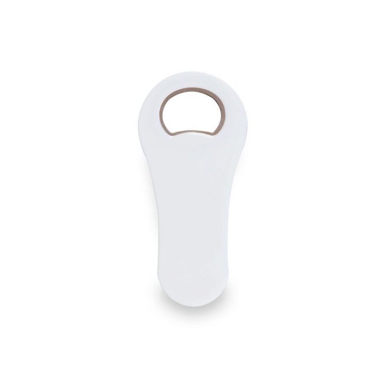 Ouvre bouteille magnétique avec corps résistant de différentes couleurs et partie métallique pour ouverture.