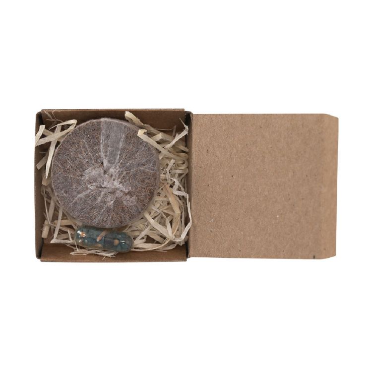 Kit à planter avec capsule de graines et pastille de substrat, présenté dans un étui en carton recyclé avec instructions de plantation. Fleurs sauvages. (couleur naturel)