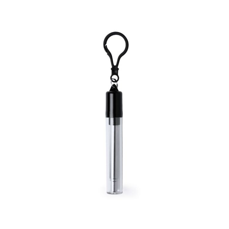 Eco-friendly. Paille en acier inoxydable réutilisable et extensible avec embout en silicone. Goupillon de nettoyage inclus. Présentée dans un étui de voyage transparent.