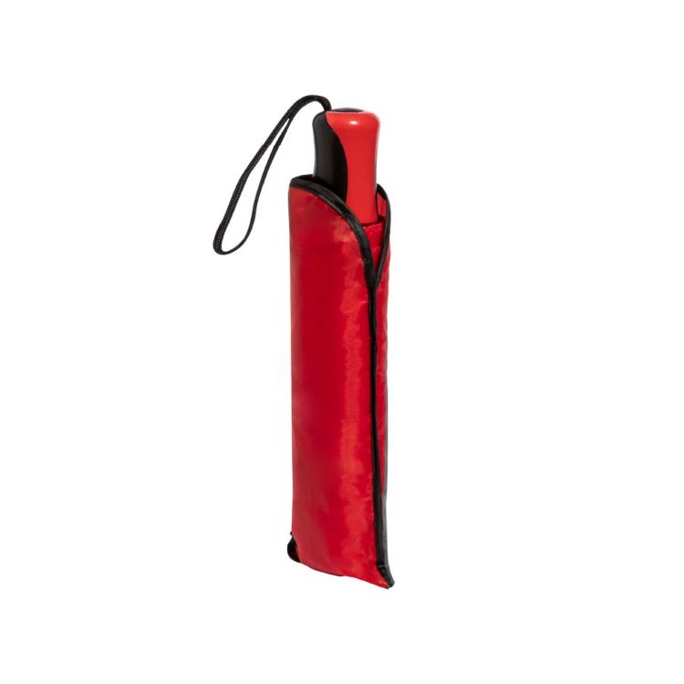 Parapluie pliant 8 panneaux en polyester 190T. Ouverture manuelle, avec tiges en métal argenté et fermeture velcro. Poignée ergonomique avec sangle de transport et housse de protection assortie. Disponible dans une large gamme de couleurs. Présenté dans un sac recyclé individuel.