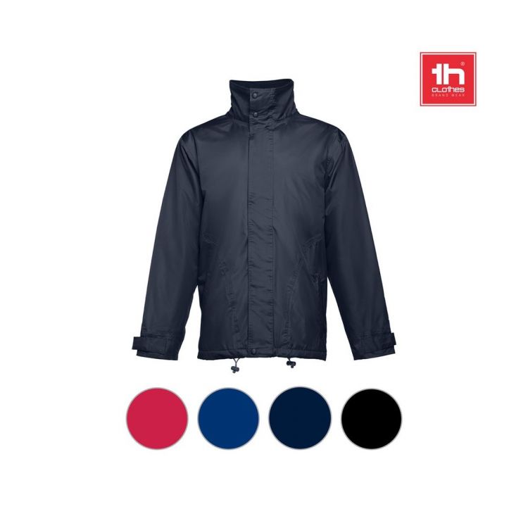Parka rembourré (unisexe) 100% polyester (extérieur : 240 g/m² 100% polyester pongé 240 et revêtement PVC imperméable , intérieur : 65 g/m² 100% polyester taffeta , rembourrage : 100 % polyester 80 g/m²). Col doublé de maille polaire noire (fermeture par bande autoagrippante (scratch) ). Capuche à col rabattable, réglable avec stoppeurs noirs. Ouverture avec rabat, fermeture zip, fermeture autoagrippante (scratch) et boutons pression noirs. Contient 2 poches extérieures avec rabat et 2 poches intérieures (1 pour téléphone portable) avec fermeture autoagrippante (scratch) . Poignets intérieurs en maille côtelée 2x2 et poignets extérieurs réglables par bandes autoagrippante (scratch) . Coutures thermo-soudées. Accès zippé au bas du dos pour faciliter la personnalisation