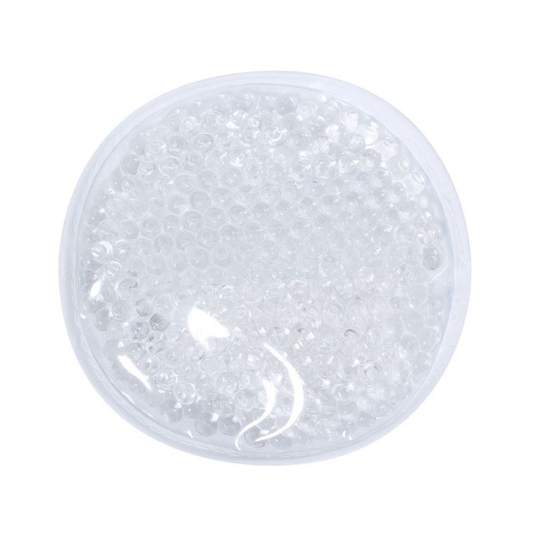 Masque thermique réutilisable à effet chaud ou froid. L'effet froid est obtenu en l'introduisant dans le réfrigérateur en 2 à 3 heures, tandis que l'effet chaleur en nécessite du micro-ondes, Réutilisable grâce aux perles de gel à l’intérieur, et avec une sangle ronde réglable pour tenir dans la paume de la main. Présenté individuellement dans un sac en papier recyclé. (couleur blanche)