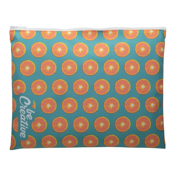Pochette zippée pour documents en polyester. Impression en sublimation. Format A4. Quantité minimum : 25 pièces.